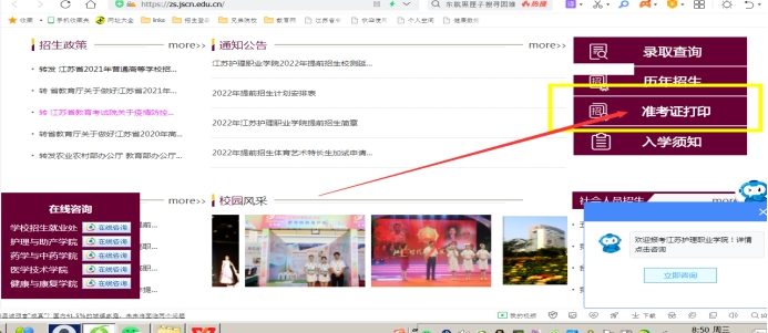 一、登录我校招生信息网http://zs.jscn.edu.cn/