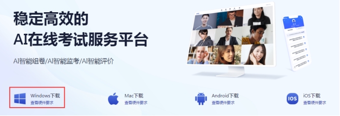 (1)电脑端下载安装“云考AI”程序,PC端下载地址:https://home.yunkaoai.com/。选择“windows下载”。