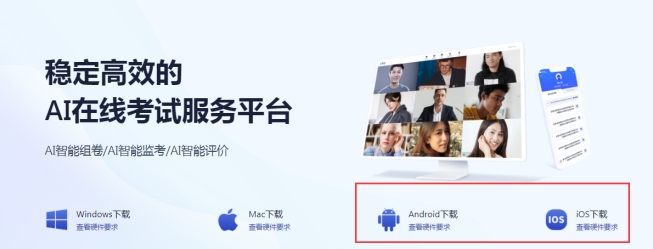 (2)手机端下载安装“云考AI”程序,电脑打开:https://home.yunkaoai.com/网址,安卓系统手机或iOS系统手机选择相应的下载、用浏览器扫码安装即可,iOS系统手机也可以直接在App Store里搜索云考AI进行下载。
